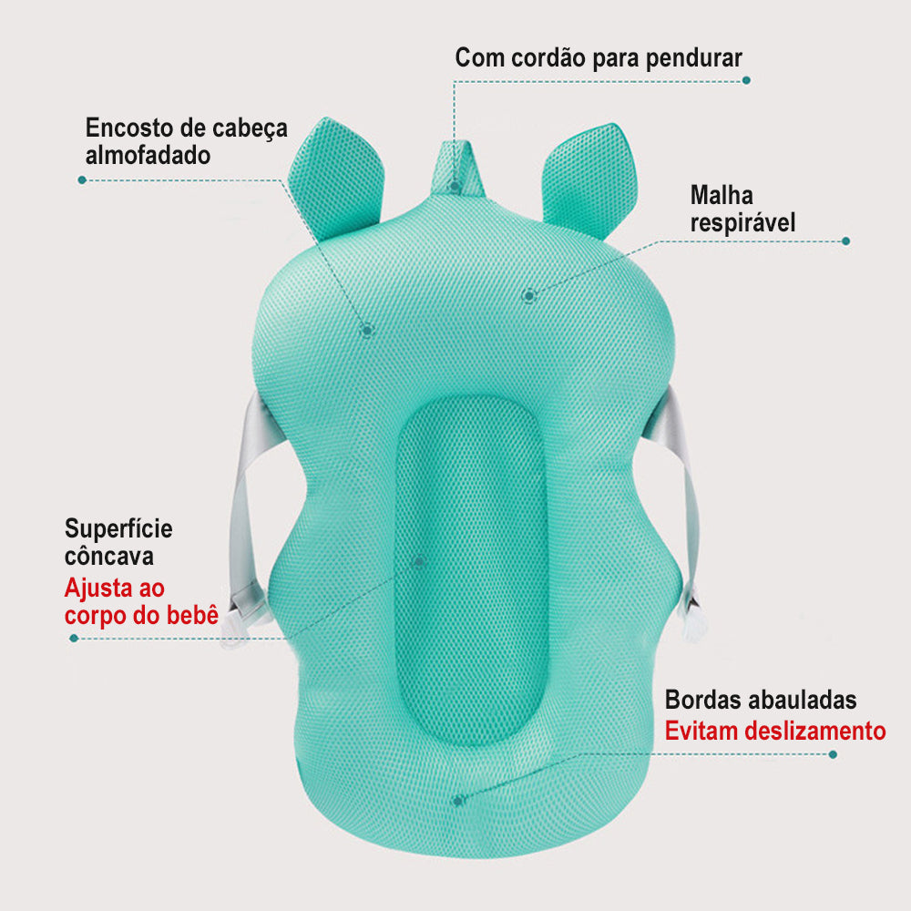 * Material Antiderrapante: A almofada é feita de um material macio e antiderrapante, que evita que o bebê escorregue durante o banho. Assim, você pode ter tranquilidade sabendo que o seu tesouro está seguro.