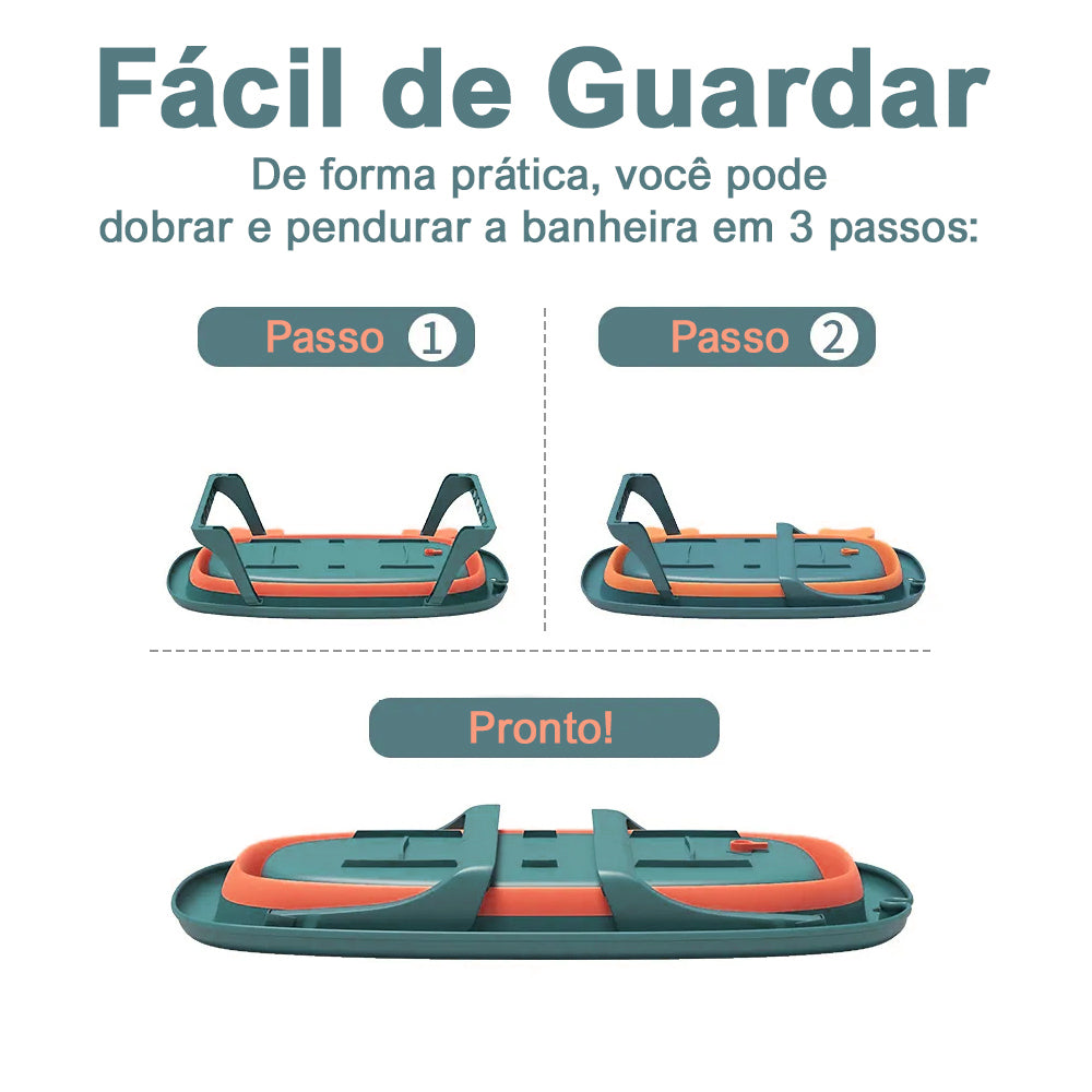 Banheira para Bebê Infantil Retrátil Dobrável Modelo Caranguejo Feliz, indicada para bebês de 0 meses a 2 anos de idade.