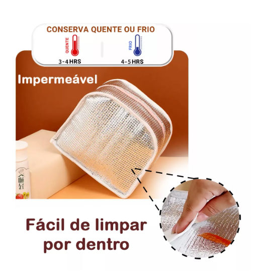 À prova d'água! Equipada com um forro de poliéster impermeável ecológico, macio, à prova de vazamento e isolamento térmico, a lancheira funciona bem em manter as bebidas frias ou aquecidas.
