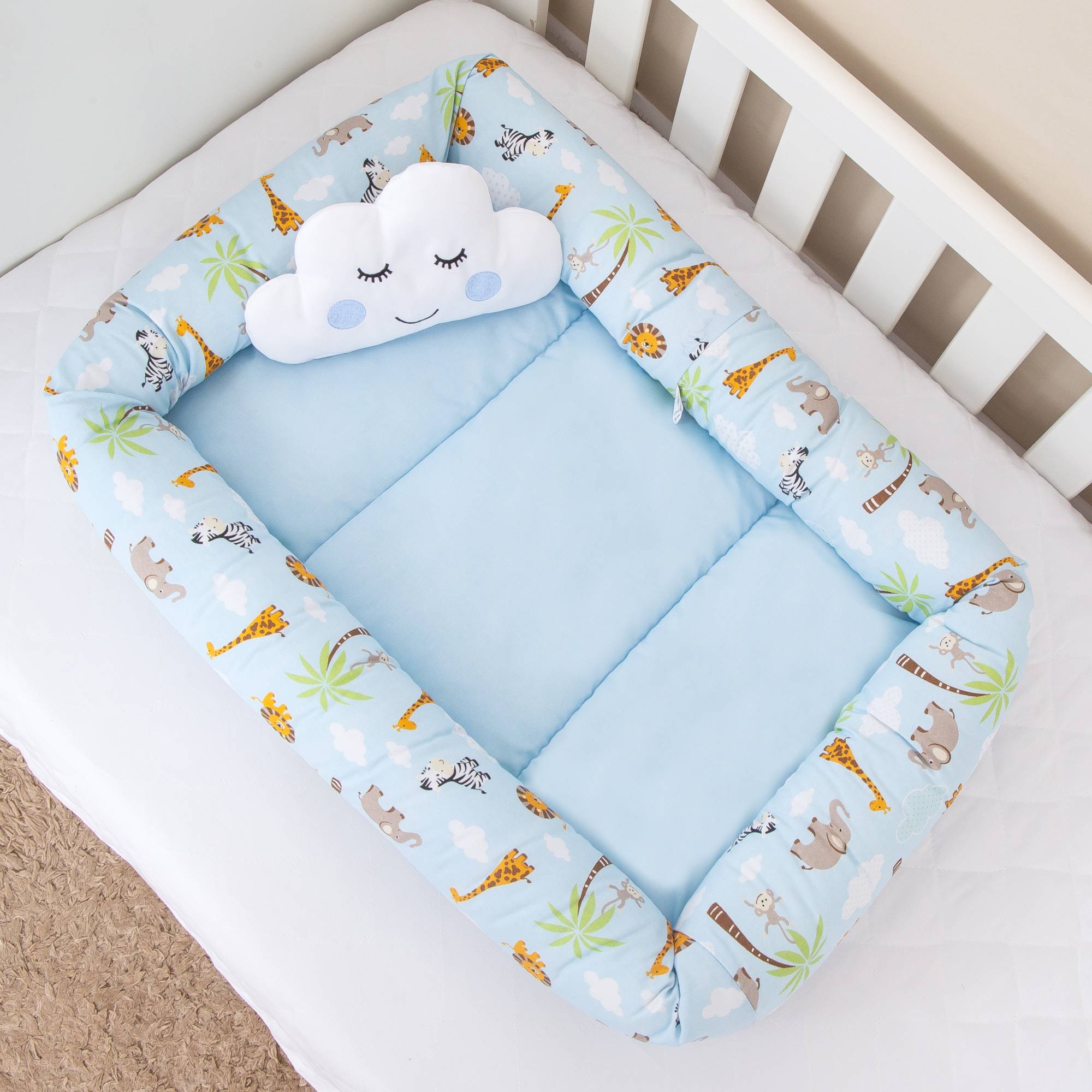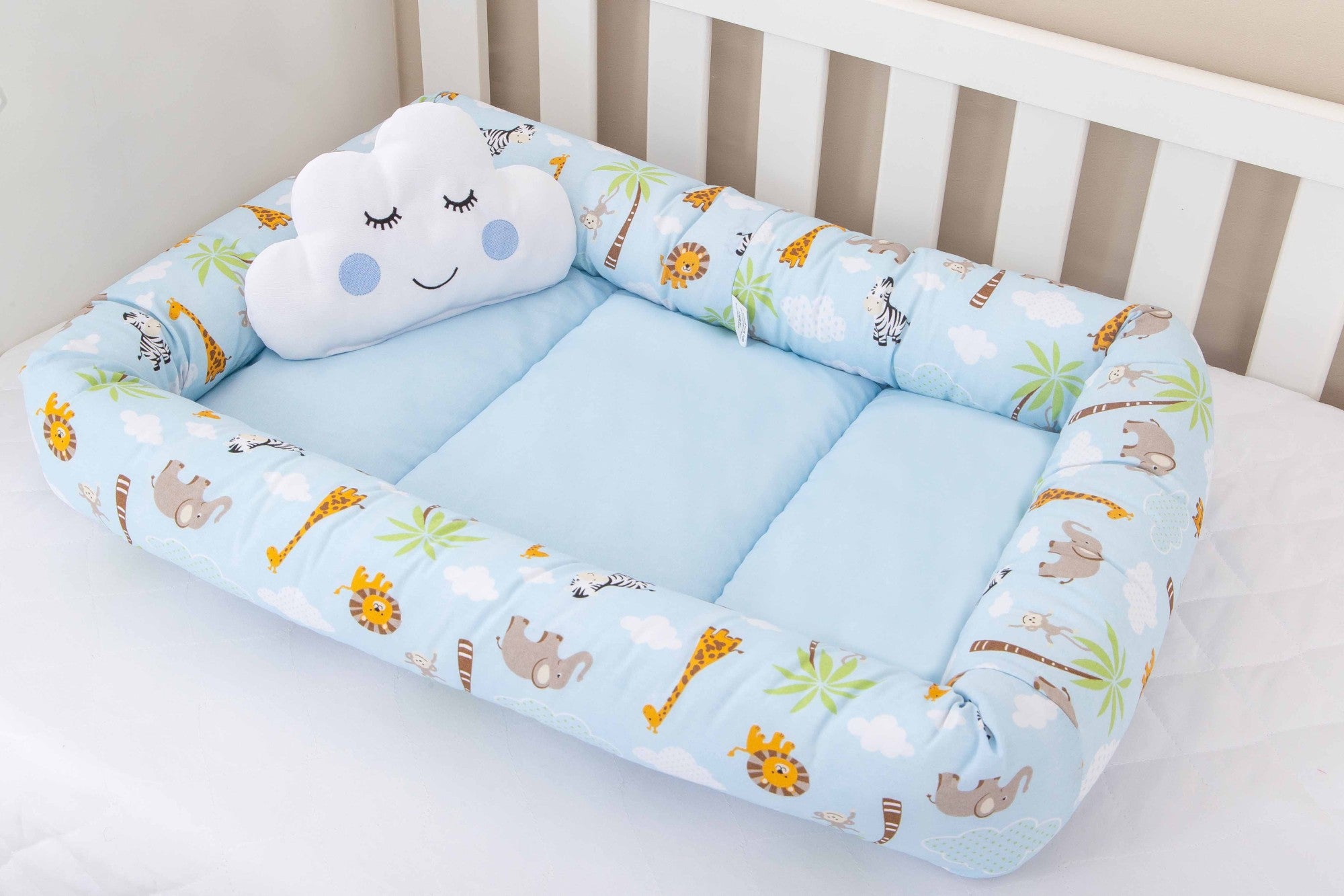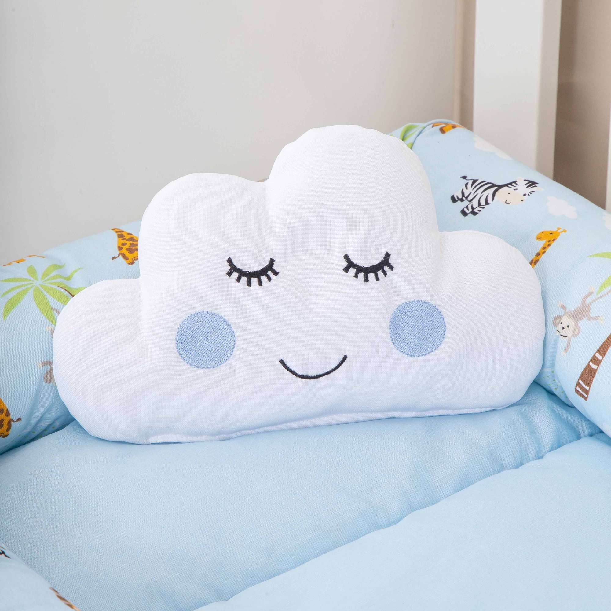 Ninho Redutor de Berço Safári Azul Bebê + Almofadinha - Maolee
