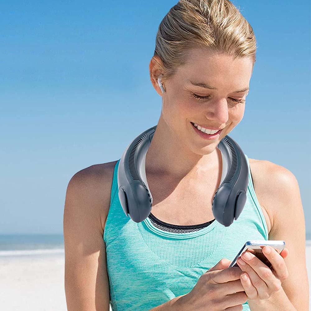Este ventilador de pescoço é projetado para operar silenciosamente, permitindo que você desfrute de sua brisa fresca sem perturbações ou ruídos irritantes. Além disso, seu design prático com controle de mãos livres permite que você o use facilmente em qualquer atividade, seja durante a prática de esportes, trabalhando ou relaxando. Leve-o para onde quiser e sinta-se refrescado o tempo todo.